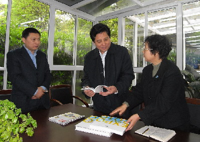 郭曉勇向中譯公司副總經(jīng)理賈硯麗等了解公司世博會(huì)翻譯出版情況